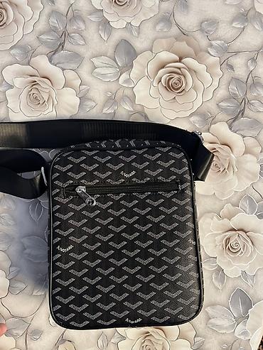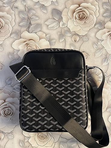 Сумка через плечо (кросс-боди) в черном цвете с фирменным «елочным» узором по всему корпусу.