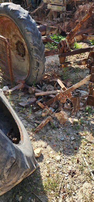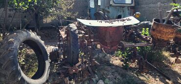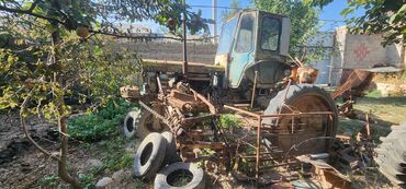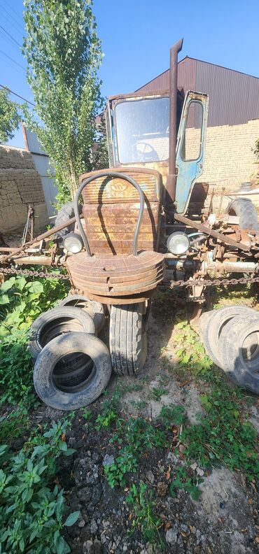 Трактор колесный, с кабиной, синего цвета. Полный привод (ведущие передние и задние колеса), передний мост портального типа. Установлена высокая выхлопная труба, передние круглые фары, задние рабоч...