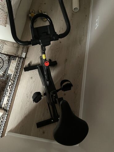 Спин-байк/велотренажер - Тренировочный спин-байк с ременным приводом и маховиком закрытого типа. - Ручная регулировка нагрузки поворотным регулятором (красная рукоятка) + экстренный стоп. - Бортов...