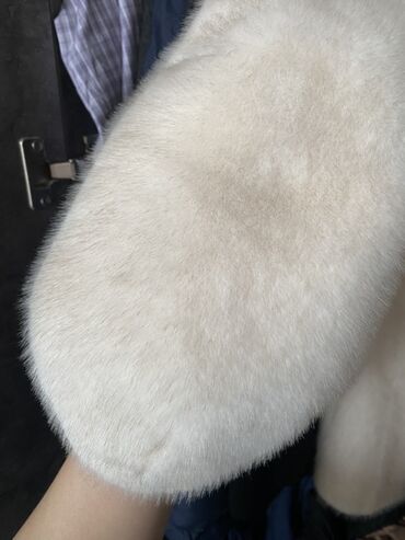 Белая меховая шуба средней длины с объёмным воротником-шалью. Плотный, мягкий ворс с равномерной фактурой, деликатный естественный блеск. Прямой силуэт, комфортная посадка, длинный рукав с широкими...