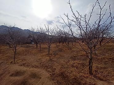 - Посажены ряды плодовых деревьев (разновозрастные яблони/косточковые): плотная схема посадки, сформированные кроны, междурядья для обработки.