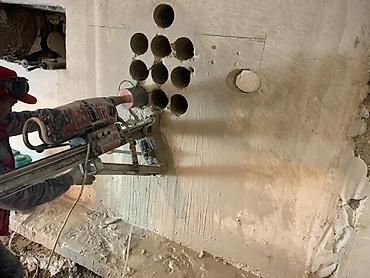 - Работы в труднодоступных местах, бурение под углом, через перекрытия и фасады.