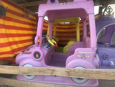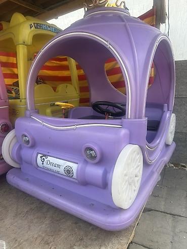 Модель: фиолетовая карета «Dream Princess car» (формат тикет/тайм-рид) и другие тематические авто — полицейские желтые/розовые. Предназначены для торговых центров, парков, игровых комнат.