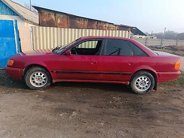Audi 100 C4 седан, красный цвет кузова. Бензиновая версия 2.3(эмблема “2.3 на крышке багажника). Кузов — 4 двери, тонированные задние стекла.