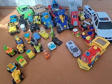 - В комплекте: башенный кран, экскаваторы, погрузчики, бульдозеры, каток, бетономешалка, самосвалы, топливозаправщик, автокран, дорожно-строительные машины; пожарные машины с выдвижными лестницами; полицейские автомобили; кареты скорой помощи; автовоз с мини-авто; разнообразные легковые и спортивные машинки, мультяшные персонажи, тракторы и комбайны, игрушечный паровоз и др.