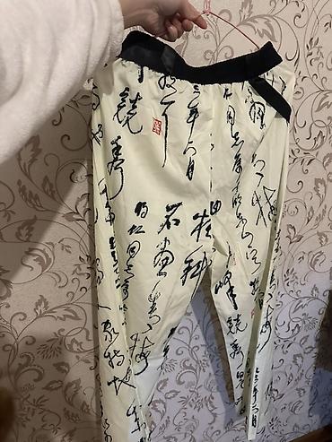 Брюки с принтом в стиле восточной каллиграфии - Цвет: молочный с