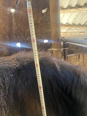 Бык (молодняк мясного направления), черной масти с белыми отметинами. Рога короткие, уши с бирками. Содержится на привязи в крытом стойле, кормление сеном и силосом из кормушки, доступ к воде. Тело...