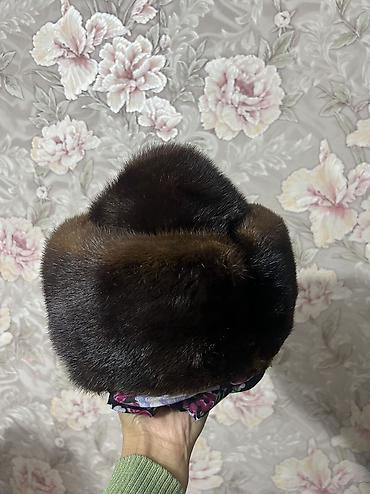 Набор женских головных уборов. 1) Шляпа фетровая, Россия. Размер 56–58. Декор — узкий кожаный ремешок и бант. Цена: 4600 сом (указано на фото). 2) Берет из норки. Размер 56–58. Цена: 3000 сом (ук...