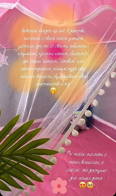 - Материалы: легкий каркас, текстильный тент, пол мягкий настил; входы и окна из полупрозрачной сетки с декоративными помпонами🤍