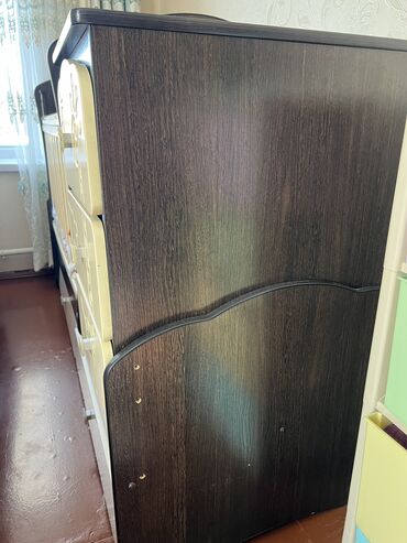 - Цвет и материалы: сочетание темного дерева (корпус/торцы) и светло-кремового цвета (решетки и фасады). Материал — ЛДСП/МДФ.