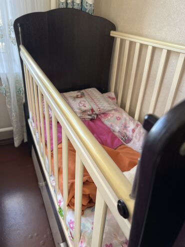 - Формат 2‑в‑1: кроватка со спальным местом для малыша и встроенный комод сбоку.