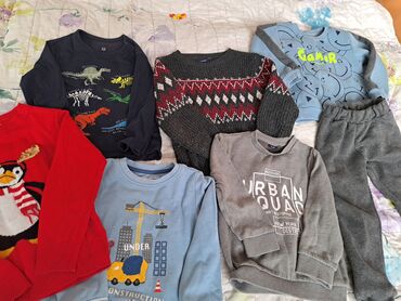 Детская одежда для мальчика, 5–8 лет. - Свитер Benetton, белый, с небольшим логотипом на груди. Размер: 5–7 лет. Цена: 300 сом. - Брюки утеплённые (джоггеры под джинсу). Размер: 7–8 лет. Цена: 300...