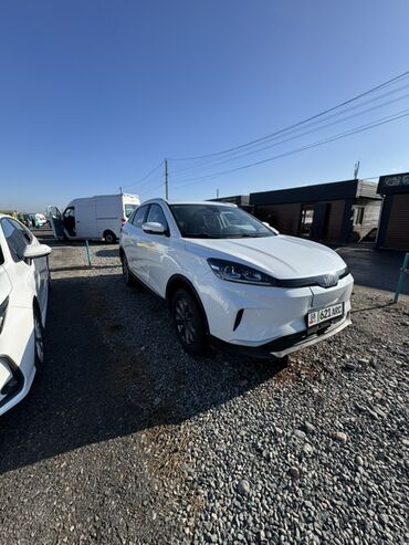 Электромобиль кроссовер (белый цвет кузова). Ключевые особенности: - Полностью электрический привод, бесшумное движение и нулевые выхлопы - Современная светотехника: светодиодные фары и ДХО - Аэро...