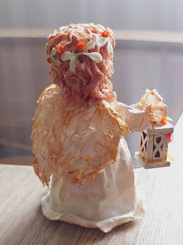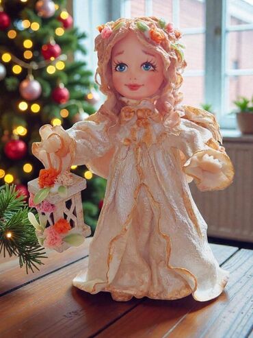 Очаровательный ангелочек, сделанный вручную (Handmade), станет прекрасным украшением новогодней ёлки. Настолько нежная и привлекательная работа, что игрушка может быть использована не только как ёлочное украшение, но и как самостоятельная декоративная фигурка.