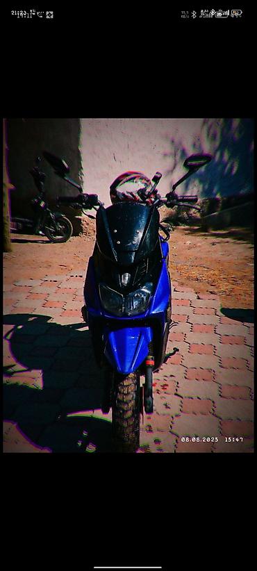 Скутер 50–150 см³ (по внешнему виду — класс китайских спорт-скутеров) в синем цвете с черными элементами и тюнингом. Особенности и оснащение: - Агрессивный пластиковый обвес, ветровое стекло увели...