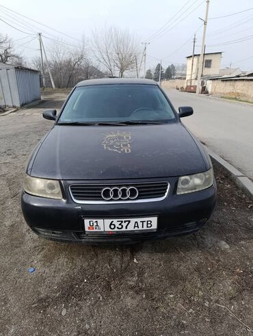 Audi A3, хэтчбек 5‑дверный, темно‑синий/черный цвет кузова. Кыргызстанские номера (01 KG 637 ATB).