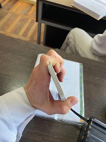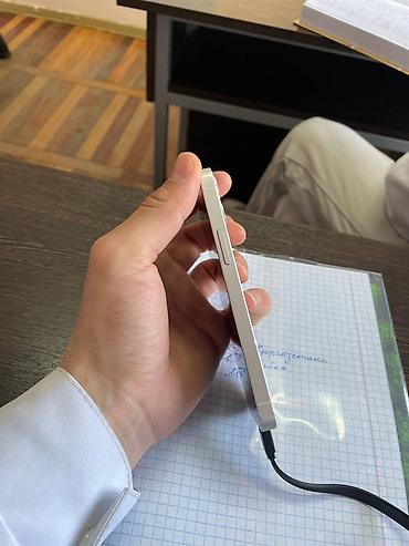 В комплекте на фото — кабель для зарядки. Экран активен, устройство включается. Цвет корпуса — белый.