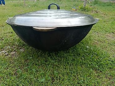 Казан большой, с крышкой 80 литров - Материал: литой металл (толстостенный), крышка металлическая с ручкой. - Диаметр ориентировочно 70–90 см (по фото — формат для больших порций). - Удобные литы...