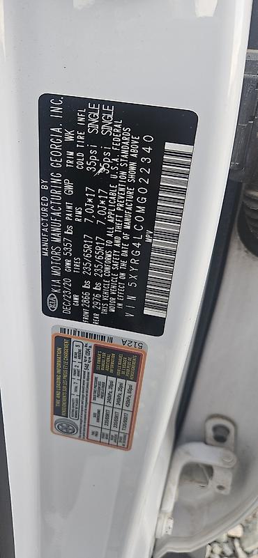 - Вин-код: 5XYRG4LC0MG022340 (по заводской табличке на стойке двери).