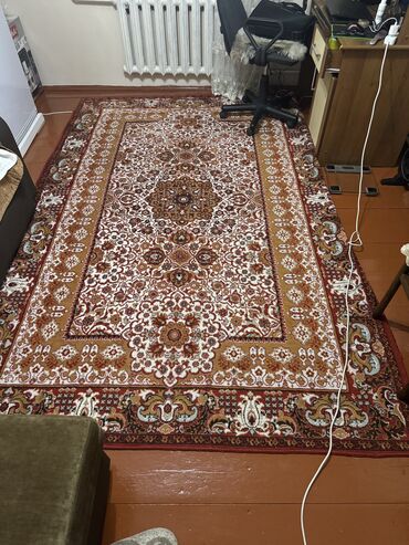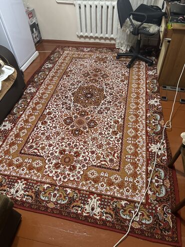 Ковер с восточным орнаментом Ковер размер 3/2.5 м цена по каждый штуке 4000 сом 2 шт в комплекте продаем - Тип: напольный ковер - Форма: прямоугольный - Цвета: бордовый и бежевый (центральное поле...