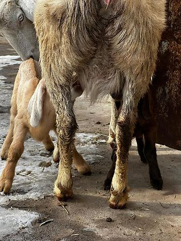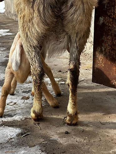 Коза с двумя козлятами Коза битал молочная с двумя малышами девочка и мальчик в день 1лт молоко есть спокойно это сейчас 2 дня как окотилась будет ещё прибавлятся - Домашняя коза с длинными отвиса...