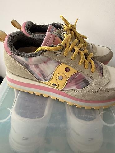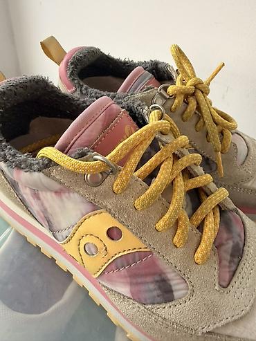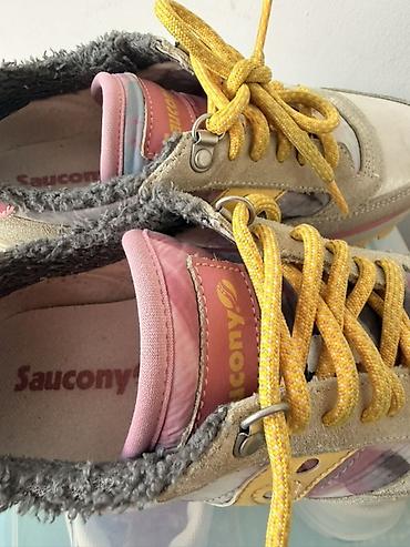 - Детали: фирменный логотип Saucony на язычке и боковой панели, петельки‑хлястики на пятке для удобства надевания