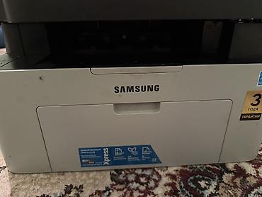 Многофункциональное устройство Samsung черного цвета с матовым покрытием, оснащенное дисплеем и кнопками управления на передней панели. Включает в себя функции принтера, сканера и копира. Подходит ...
