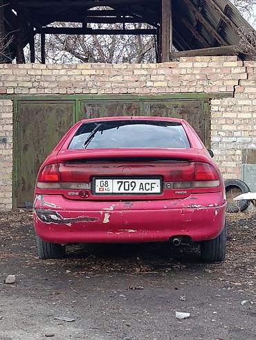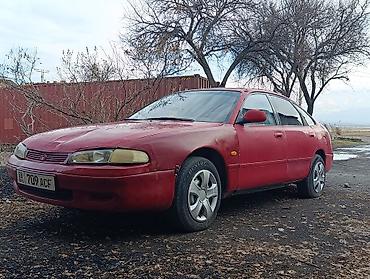 Mazda 626 (седан), красный цвет, киргизские номера. Кузов: - 4 двери, классический седан. - Передняя оптика прямоугольная, пластиковые бамперы. - Легкосплавные/штампованные диски с декоративными к...