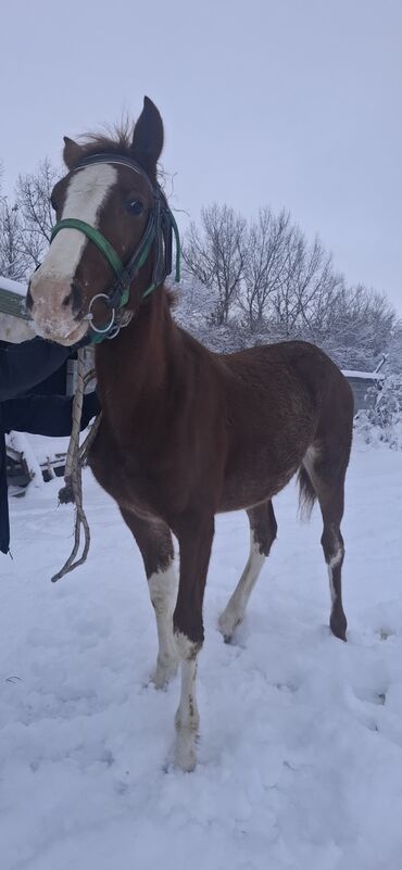Срочно !!!!Продаю породистую (англичанин с поляк)кабылу, возраст 3 года ( Бышты)! Это у неё первенец от породистого скакуна ( поляка по кличке «глобус»)! Данные очень хорошие ! В холке 1.60 ,еще б...200 KGS