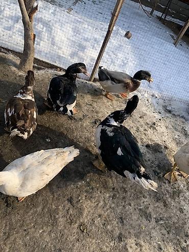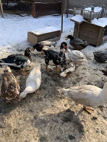 - Порода: мускусная утка (индоутка), на фото – черно-белые, бурые, белые и пестрые особи, есть селезни и утки.