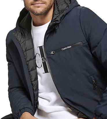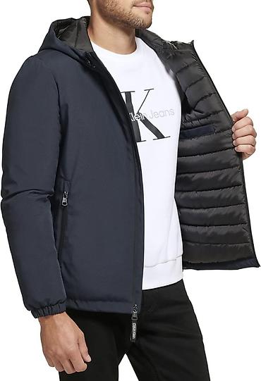 - Карманы: два боковых на молнии; нагрудный карман на молнии с фирменной нашивкой Calvin Klein; внутренний карман