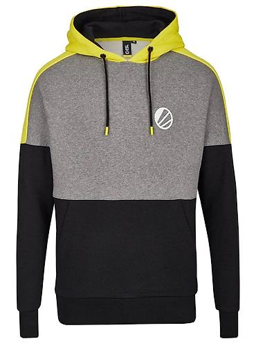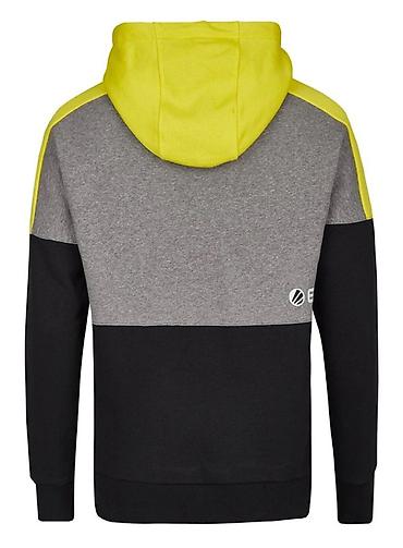 Мужское худи с капюшоном, цвет-блок серый/черный с неоново‑жёлтыми вставками.