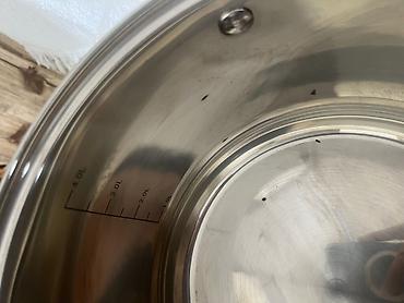 - Большая кастрюля Vicalina: из нержавеющей стали, мерная шкала на внутренней стенке (л/мл), удобные литые ручки, стеклянная крышка с отверстиями для выхода пара. Подходит для приготовления супов, бульонов, пасты.