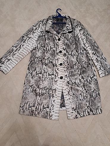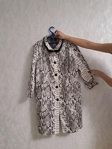 Элегантный женский плащ из крокодиловой кожи с принтом под змею.