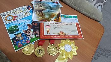 - Титулы и награды: есть дипломы и медали выставок, сертификаты оценок (на фото — Кубок Кыргызстана 2024 и др.)