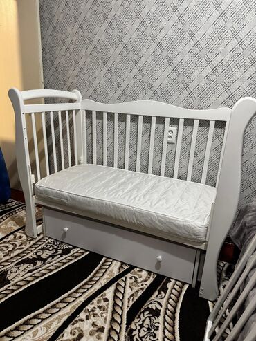 Продается детская кроватка, состояние отличное. Есть маятник, два уровня положения матраца, съемный передний борт, с тремя уровнями высоты. Вместительный нижний шкаф. Матрац покупали отдельно, ортопедический, на кокосовом волокне, разная жесткость с двух сторон.