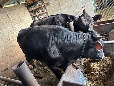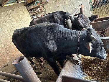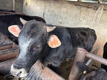 Бычки мясных пород - Группа молодняка КРС на откорм: преимущественно светлые бычки (в т.ч. светло-кремовые/белые), есть черные и рыжие особи. - Содержатся в крытом коровнике и на выгульной площадк...