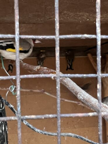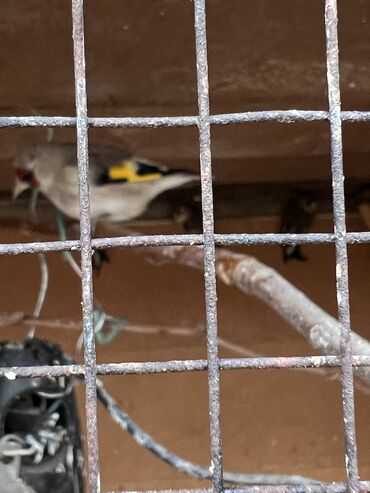 Щеглы (пара) в клетке - Вид: щегол европейский (Carduelis carduelis) — яркая маска на голове, красный жёлтые «зеркала» на крыльях, черно‑белый хвост. поют очень хорошо -