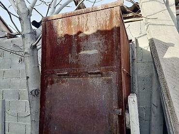 Металлический хозблок/шкаф для хранения - Материал: цельнометаллические листы с каркасом, двустворчатые двери с кольцами под навесной замок. - Габариты ориентировочно: около 2–2,2 м высота, 1,2–1,...