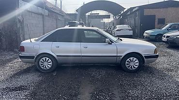Audi 80 B4 седан, серебристый, на руках только тех паспорт штраф арест нет карбюратор киргизских номерах (G5 KG 544 AAY).