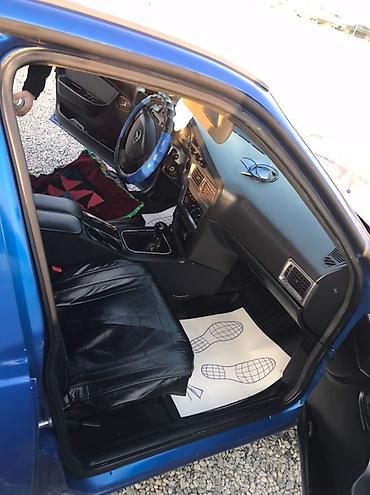 Daewoo Nexia, седан, темный цвет. Основные характеристики: - Кузов: 4-дверный седан, рейлинги/багажник на крыше. - Трансмиссия: механическая коробка передач (рычаг МКПП). - Салон: передние сиденья...