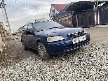 Honda Civic (седан), темно‑синий цвет. Кыргызские номера 08 KG, номер на фото. На крыше установлен таксометровый “шашечный” плафон TAXI (съёмный).