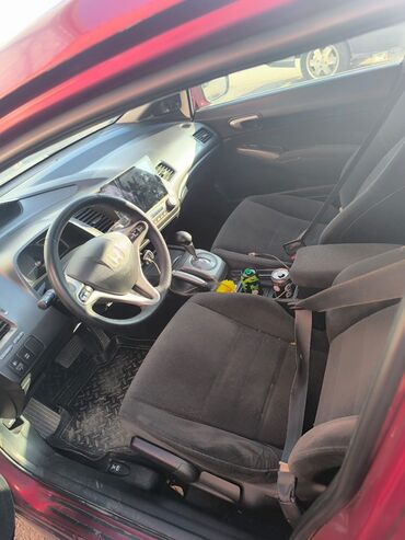 Honda Civic (седан) — ярко‑красный, правый руль. Номерные знаки KG. Основные особенности: - Кузов: 4‑дверный седан, фирменная эмблема Honda спереди - Двигатель/трансмисси: автоматическая коробка (...