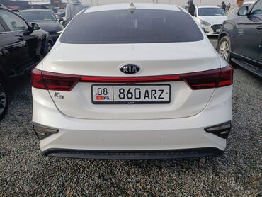 Номерные знаки KG на автомобиле. Модельное обозначение K3 на крышке багажника. Белый лакокрасочный слой в сочетании с чёрными акцентами бамперов придаёт современный вид. Отличается экономичностью и просторным багажником для класса.