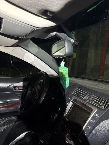 На фото видны: чистый кожаный интерьер с центральным экраном, автомат, фирменная оптика, эмблемы и шильдик GS 300, задние датчики парковки, оригинальные литые диски. Номерной знак KG.
