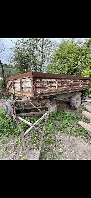 - Прицеп тракторный двухосный, самосвальный тип борта. Металлическая платформа с высокими бортами, передняя дышловая вилка, рессорная подвеска, колеса сельхозтипа.