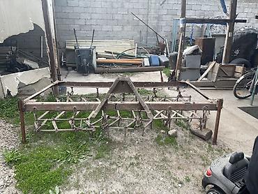 - Культиватор/рыхлитель секционный прицепной. Продольная рама с центральной стойкой под навеску, несколько рабочих секций/лап для междурядной обработки и рыхления, боковые опорные катки/колеса.