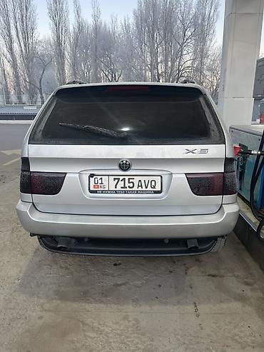 BMW X5 (E53), серебристый внедорожник. Кузов и внешний вид: - Классический дизайн первого поколения X5 E53 - Серебристый цвет, заводные рейлинги на крыше - Литые диски BMW большого диаметра - Тони...