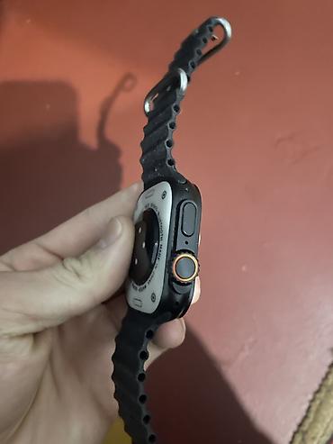 Смарт-часы в стиле «Ultra» с прямоугольным корпусом и черным рифленым ремешком.