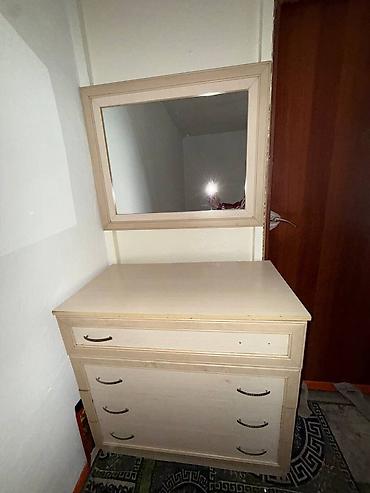 - Комод с четырьмя выдвижными ящиками и настенным зеркалом в рамке в тон гарнитура.